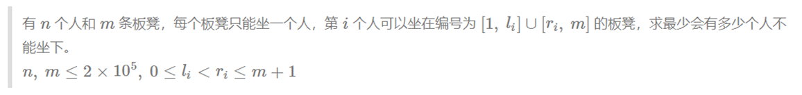 假设最后有 k 个人选不到,那么就说明任选 t 个人,设他们最大的 li 为 L,最小的 ri 为 R,则需要满足 L+n-R+1+k>=t。