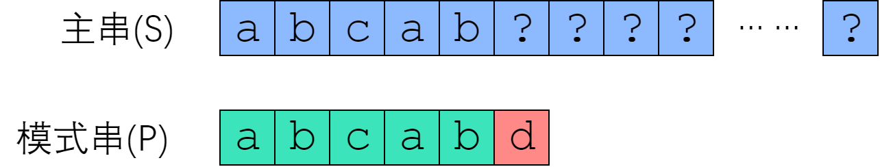 和主串从$S[0]$开始匹配时,在 $P[5]$ 处失配。