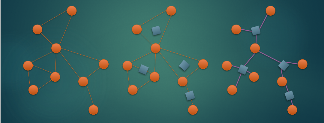 显然,圆方树中每条边连接一个圆点和一个方点。